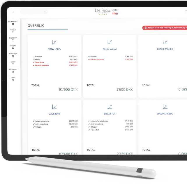 Alle de funktioner Life Peaks udbyder har du direkte tilgang til via backend systemet.