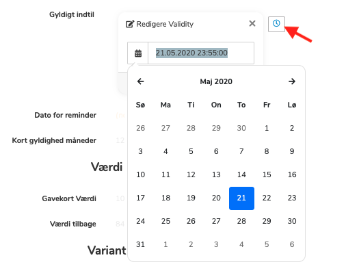 - Tryk på uret og vælg den nye gyldighedsdato