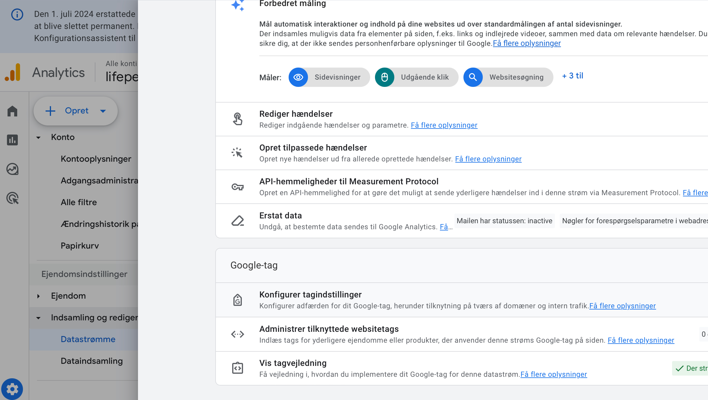 7. I jeres GA4 under admin->property settings-> data streams->web->more data settings-> configure domains tilføj der lifepeaks.dk.