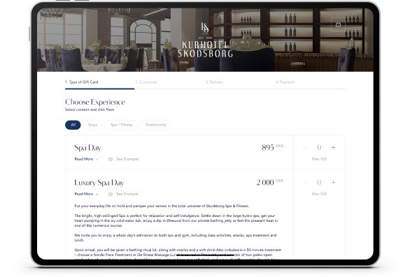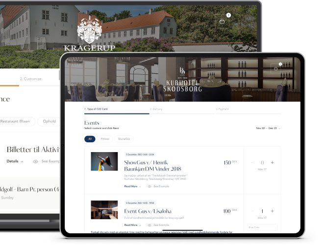 Vi tilpasser ordremodul og gavekortdesign, så det præcist matcher jeres identitet