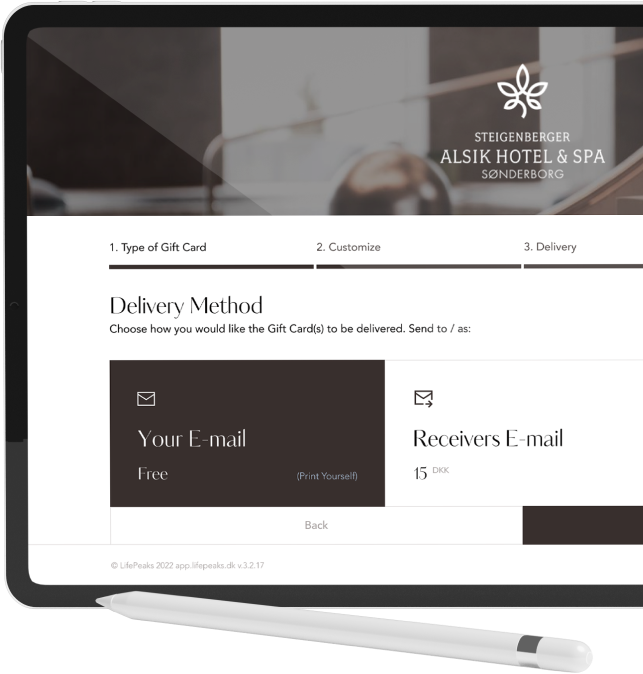 Jeres kunder kan vælge at få leveret gavekort direkte på e-mail, SMS eller sendt som pakke med track & trace.